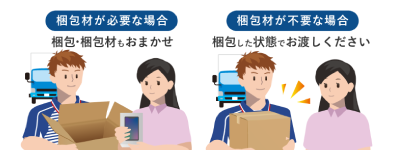 買取品本体と付属品もお持ちであれば、回収に伺った配達員に合わせてお渡しください。梱包も行います。(お客様にて梱包済みの場合はそのままお渡しください。)
